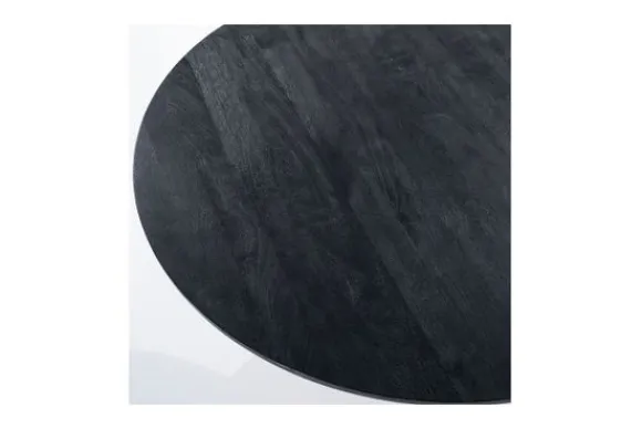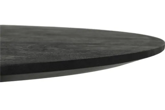 Eettafel Aron black 95657 is vervaardigd uit mangohout met een zwarte, geverfde afwerking. Het blad loopt elegant taps af en rust op een kegelvormige poot van 50 cm doorsnede.