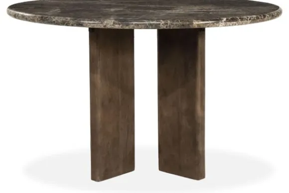 Eettafel Lando 96517 van het merk Eleonora is een luxueuze verschijning die warmte en elegantie samenbrengt. Het ronde tafelblad is gemaakt van gepolijst marmer, waarbij de natuurlijke aders subtiel door het oppervlak lopen.