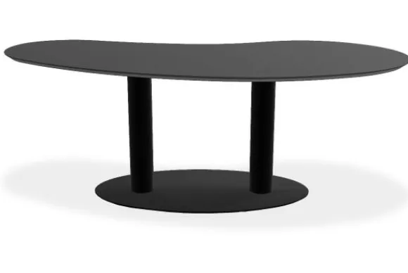 Eettafel San Dulhan van het merk Every Table BV is een krachtig statementstuk met een opvallend organisch karakter. Het diepe zwarte blad heeft een speelse, asymmetrische vorm die de eethoek een kunstzinnige en moderne uitstraling geeft. De afgeronde lijnen zorgen voor een visuele zachtheid die uitnodigt tot ontspannen tafelmomenten. De tafel is beschikbaar in diverse kleuren en met verschillende onderstellen, zodat je de tafel volledig kunt afstemmen op jouw persoonlijke stijl en ruimte.