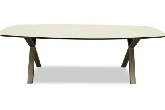 Deze eettafel wordt geleverd met metalen kruispoten in het champagne als tafelpoot. Onder “Kies je extra’s” is het mogelijk om te kiezen voor een andere kleur of een geheel andere tafelpoot.