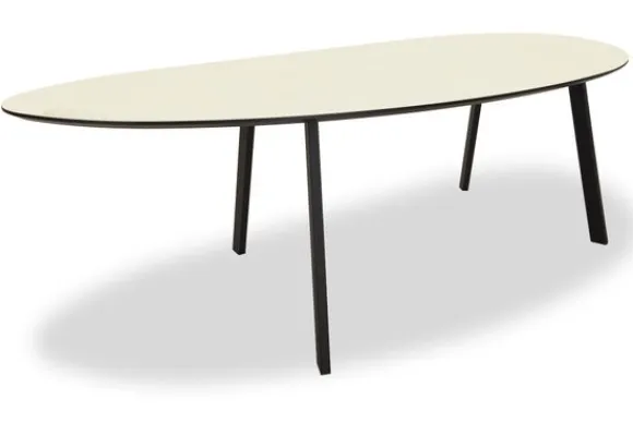 Eettafel Bogota van het merk Every Table BV is verkrijgbaar in verschillende kleuren en afmetingen. Het tafelblad is slippervormig en loopt taps af langs de randen, waardoor deze tafel geen scherpe hoeken heeft. De eettafel is gemaakt van MDF hout. MDF meubelen zijn vrij van noesten, zijn mooi vlak en hebben een egale kleur. Ook wordt MDF niet beïnvloed door temperatuur verschillen, dus zal het hout ook niet krom gaan trekken.