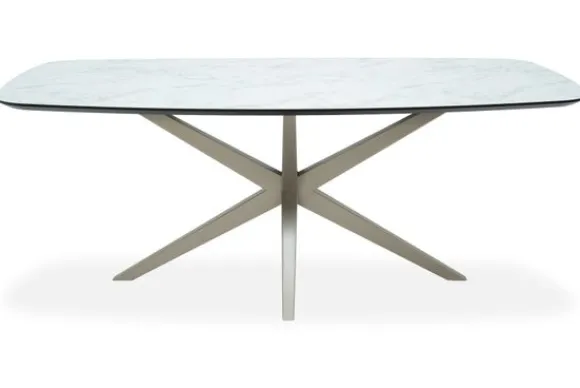 Eettafel Bogota van het merk Every Table BV is een stijlvolle en moderne eettafel met een luxe uitstraling. Het tafelblad met afgeronde hoeken en een marmerlook afwerking geeft de tafel een elegant en tijdloos karakter. Perfect als blikvanger in een design, hotel chic of modern interieur.