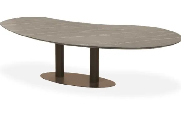 Deze eettafel wordt geleverd met een poot in de kleur anodic brown. Onder “stel jouw tafel samen” is het mogelijk om te kiezen voor een andere kleur of een geheel andere tafelpoot.