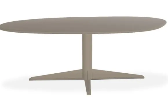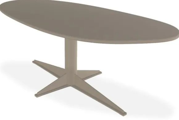 Eettafel Mendoza van het merk Every Table BV heeft een bladvormig HPL blad van 2,8 centimeter dik. Het blad is standaard uitgevoerd met een ronde rand.