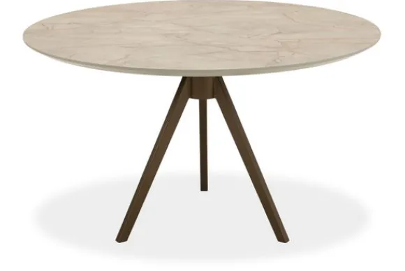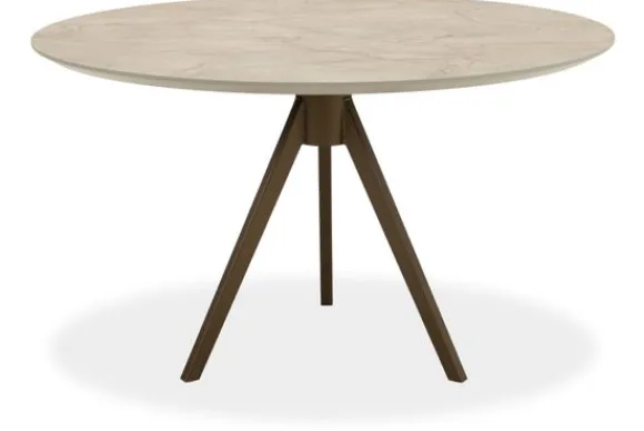 Eettafel Nuvio van het merk Every Table BV heeft een rond HPL blad van 2,8 centimeter dik. Het blad is standaard voorzien van een tapse rand.