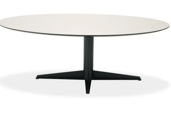 Eettafel Quito van het merk Every Table BV is een eigentijds statementstuk met een minimalistische elegantie. Het ovaal gevormde blad, vervaardigd uit hoogwaardig HPL, straalt een verfijnde eenvoud uit die perfect past binnen zowel een modern en industrieel interieur als een Scandinavisch geïnspireerde leefruimte. De slanke vormgeving en het strakke lijnenspel van de centrale poot met kruisvormige voet creëren een boeiend contrast tussen functionaliteit en esthetiek.