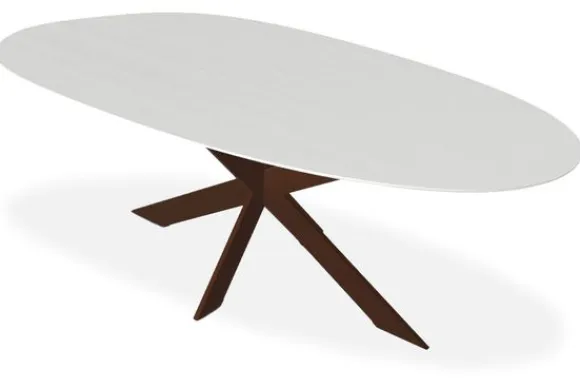 Eettafel Rosario van het merk Every Table BV heeft een elegante en verfijnde uitstraling. De bladvormige vorm en het 2,8 cm dikke blad met tapse rand geven de tafel een modern en luchtig karakter.