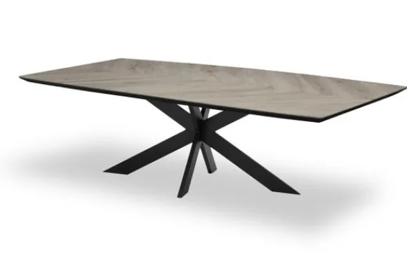 Tafel Hessel van het merk Fenix is gemaakt van massief eikenhout en verkrijgbaar in verschillende kleuren en afmetingen. De tafel heeft een modern visgraatmotief, wat goed aansluit bij Industrieel of Modern gestijlde interieurs.