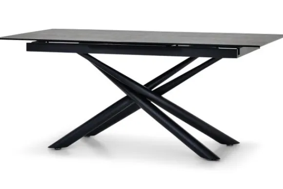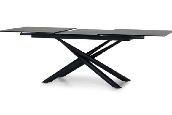 Eetkamertafel Example van het merk Infenta is verkrijgbaar in de afmeting B180 x D95 x H76 cm. De tafel is uitschuifbaar tot een afmeting van 240 cm. De tafel is voorzien van een keramisch bovenblad van 4 mm gelijmd op een getemperd glasblad van 8 mm.
