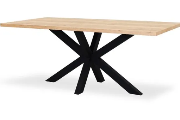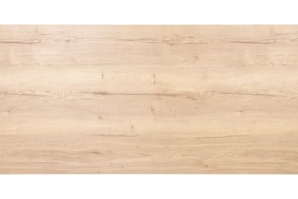 Eettafel Novac van het merk Lamulux, hier te zien in de kleur fresh oak, is beschikbaar in diverse afmetingen en kleuren. De tafel is voorzien van een zwart metalen poten. De tafel heeft een eenvoudig rechthoekig design.
