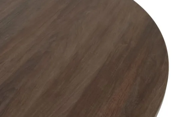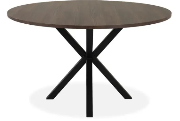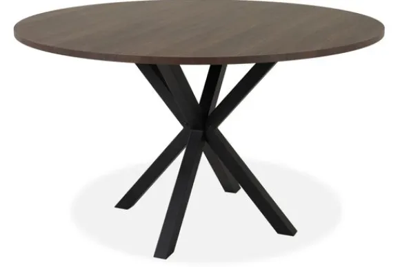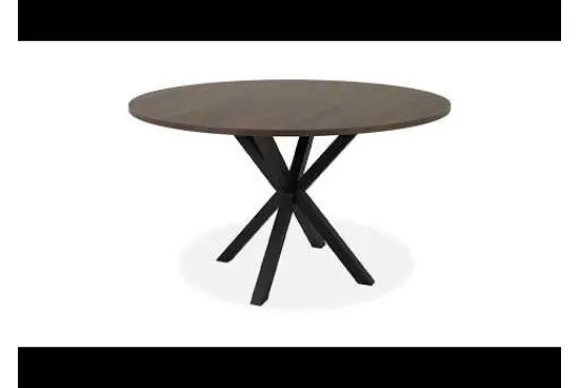 Eettafel Bury van het merk Lamulux is een ronde tafel met een strak ontwerp en een duidelijke houtstructuur in het blad. Het metalen onderstel is uitgevoerd als spinpoot en geeft de tafel een stabiele basis.