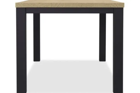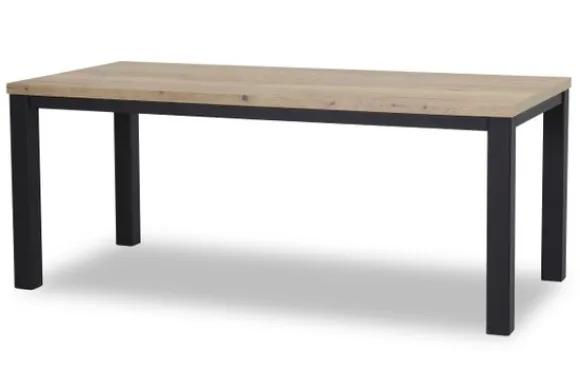 Eettafel Empire van het merk Lamulux, hier afgebeeld in de kleur natur, is beschikbaar in diverse afmetingen en kleuren. De tafel is voorzien van een zwart metalen poten en een zwart metalen rand onder het tafelblad. De tafel heeft een eenvoudig rechthoekig design.