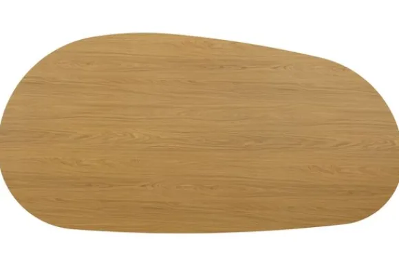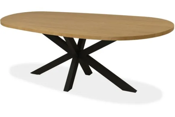 Eettafel Orion van het merk Lamulux, hier te zien in de kleur blond oak, is verkrijgbaar in diverse afmetingen en kleuren. De tafel is voorzien van een zwart metalen spinpoot. De eettafel heeft een kiezel vorm. Deze tafel wordt standaard uitgevoerd met een meekleurend tafelblad, je kunt ook kiezen voor een zwarte rand om het tafelblad. Het blad is afgewerkt met een melamine bovenlaag.