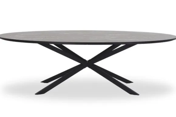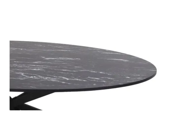 Eettafel Cherry van het merk Lamulux, hier afgebeeld in de kleur marmer nero, is beschikbaar in diverse afmetingen en kleuren. De tafel is voorzien van een zwart metalen onderstel. De rand van het ovale blad loopt recht af. Onder de tafelpoot zitten steldoppen, hiermee zorg jij ervoor dat de tafel stevig op jouw vloer staat.