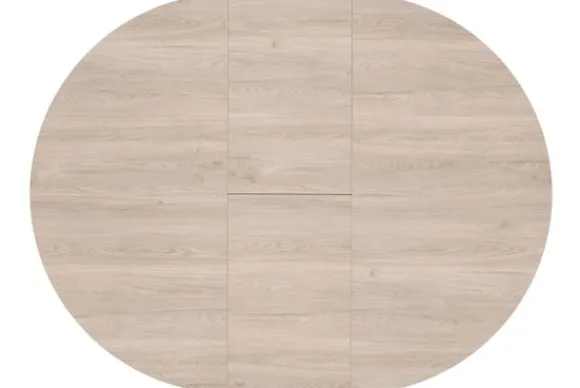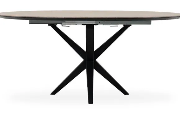 Uitschuiftafel Beaumont van het merk Lamulux is een moderne ronde tafel met een stevig zwart metalen onderstel. Dankzij het ronde blad ontstaat er een gezellige setting waarbij iedereen eenvoudig met elkaar in contact staat. Wanneer de tafel uit wordt geschoven krijgt deze een ovale vorm.