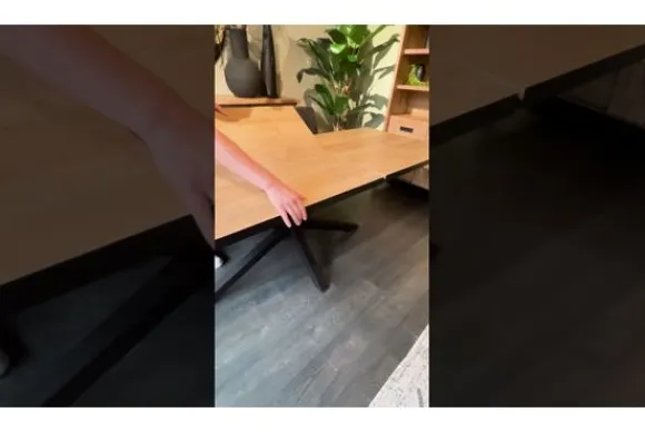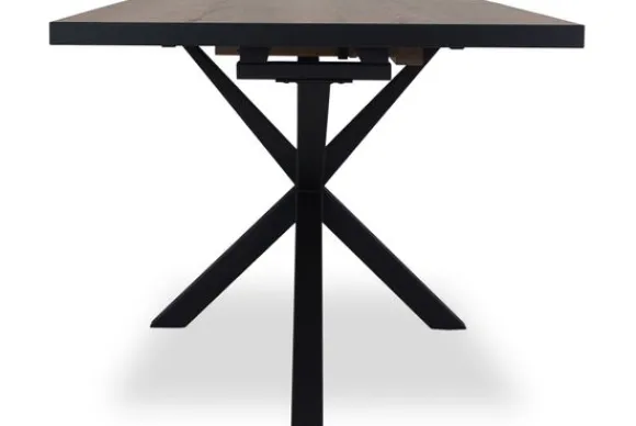 Uitschuiftafel Juster-Moana van het merk Lamulux, hier afgebeeld in de kleur dark almond, is beschikbaar in diverse afmetingen en kleuren. De tafel is voorzien van een zwart metalen onderstel. Je kunt het blad uitschuiven, zodat jij meer plek aan tafel krijgt. De zijkanten van het tafelblad zijn zwart, maar je kunt ook voor een meekleurende rand kiezen.