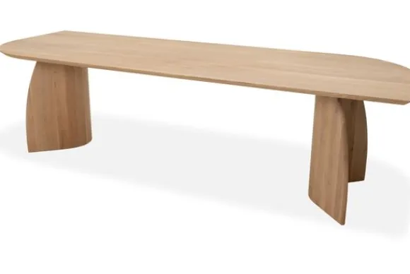 Eettafel Hedera van het merk Premium Interior is uitgevoerd met een asymmetrisch rechthoekig blad en staat op gevormde zijpanelen. De vorm van het blad en de plaatsing van de poten zorgen voor een duidelijke en stabiele tafelconstructie.
