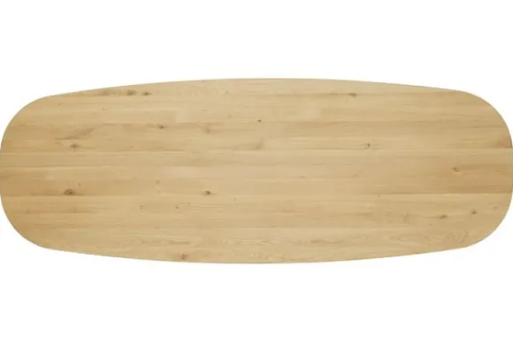 Eettafel Hovea van het merk Premium Interior heeft een stomp ovale vorm met een stevig houten blad. De tafel biedt voldoende ruimte om aan te zitten en is geschikt voor dagelijks gebruik.