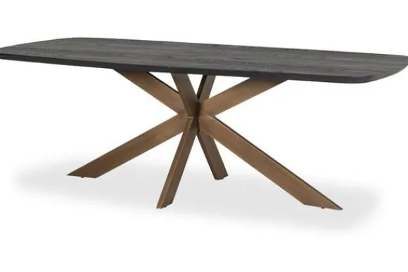 Eettafel Cambon van het merk Richmond Interiors heeft een stoere, industriële uitstraling. De tafel heeft een houten blad met een brass (staal in mat goud) kruispoot. De kruispoot zorgt ervoor dat de hele tafel rondom beschikbaar is, waardoor je meerdere eetkamerstoelen rondom de tafel kunt aanschuiven. De tafel oogt ruimtelijk in jouw eethoek.