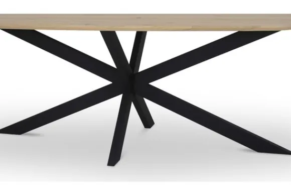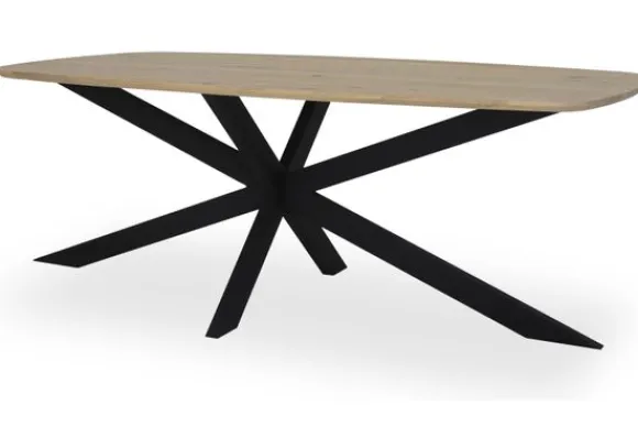 De Varese eettafel heeft een taps bladtype, wat de eettafel een elegante look geeft. Bij alle eettafels van Simble kun je zelf ook de tafelpoten kiezen zodat je de tafel naar jouw smaak kunt aanpassen! Deze tafel wordt standaard geleverd met poot 46, dit is een metalen kruispoot.