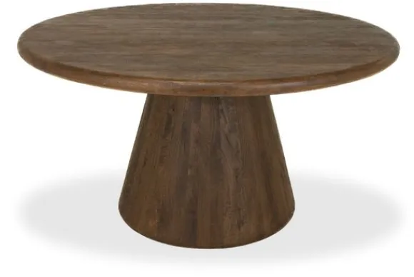 Eettafel Asti van het merk Tower Living omarmt de warmte van natuurlijk design met zijn rijke bruine mangohout en ronde vorm. Het solide tafelblad rust op een brede, taps toelopende poot, waardoor het geheel een krachtige maar vloeiende uitstraling krijgt. De zichtbare houtstructuur geeft elke tafel een uniek karakter, met subtiele nuances die het ambacht voelbaar maken.