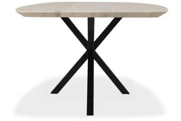 Eettafel Vina van het merk Van Dijk Furniture is een verfijnde verschijning met een moderne flair en een subtiel speels karakter. Het Deens ovale blad in licht eikenhout laat een zachte nerftekening zien, waarbij de natuurlijke elegantie van het materiaal volledig tot zijn recht komt. Met een dikte van 4,4 cm – waarvan 2 cm opgedikt – oogt de tafel luchtig, maar voelt ze tegelijkertijd solide aan.