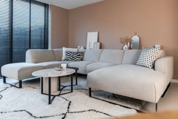 Hoekbank Romi II van het merk Gabanna is beschikbaar in alle kleuren en in verschillende materiaalsoorten, zoals stof, velvet en rundleder. Je kunt kiezen uit diverse afmetingen en pootmogelijkheden. De Romi heeft een strakke uitstraling vanwege de vaste kussens. De kussens van de Romi zijn gevuld met luxe rendementschuim, maar er kan ook voor koudschuim gekozen worden. Koudschuim wordt ook wel High Resilience genoemd. High Resilience betekent “hoge veerkracht”, koudschuim is dus een schuim met hoge veerkracht en staat ook bekend om zijn lange levensduur. Deze kussens worden ondersteund door hoogwaardige nosagvering en de bank heeft een erg sterk, houten frame. De naden zijn gevouwen en zorgen voor een leuk detail. Bankstel Romi wordt standaard uitgevoerd met poten van 17 cm hoog, maar je kunt ook kiezen voor poten van 19 cm hoog. De standaard zithoogte van 46 cm wordt dan 48 cm.