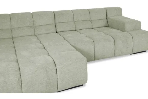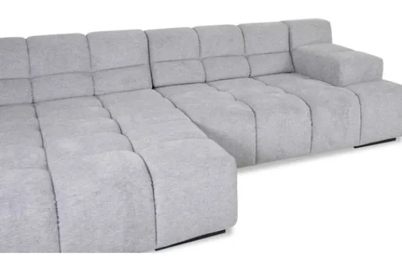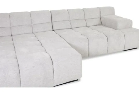 Dit bankstel is samen te stellen in vele afmetingen en verschillende opstellingen, of kies uit een van de standaard opstellingen. Ook kan je kiezen uit mat zwarte of chroom pootjes en zijn er bijpassende hoofdsteunen, sier- en lendekussens en poefjes beschikbaar. Deze worden uitgevoerd in dezelfde stof als de bank.