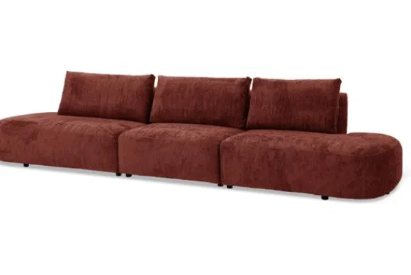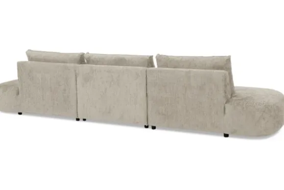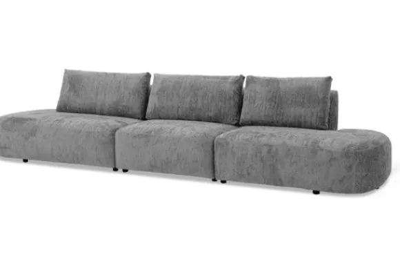 Bij de bank zijn een bijpassend sierkussen en een rechthoekige poef verkrijgbaar. De poef dient als extra zitplek en als stijlvolle aanvulling op de organische vormen.