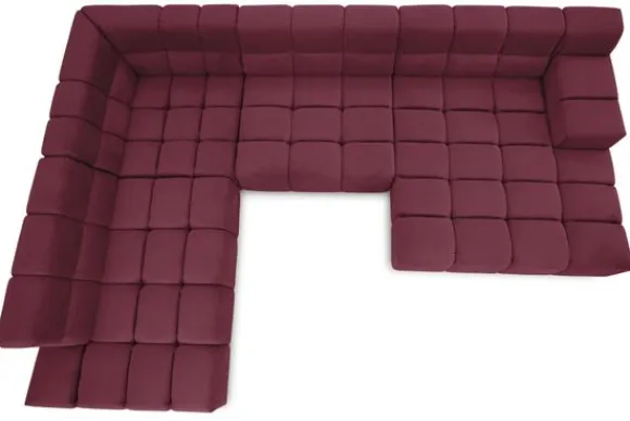 Dit bankstel is samen te stellen in vele afmetingen en verschillende opstellingen, of kies uit een van de standaard opstellingen. Ook kan je kiezen uit mat zwarte of chroom pootjes en zijn er bijpassende hoofdsteunen, sier- en lendekussens en poefjes beschikbaar. Deze worden uitgevoerd in dezelfde stof als de bank.