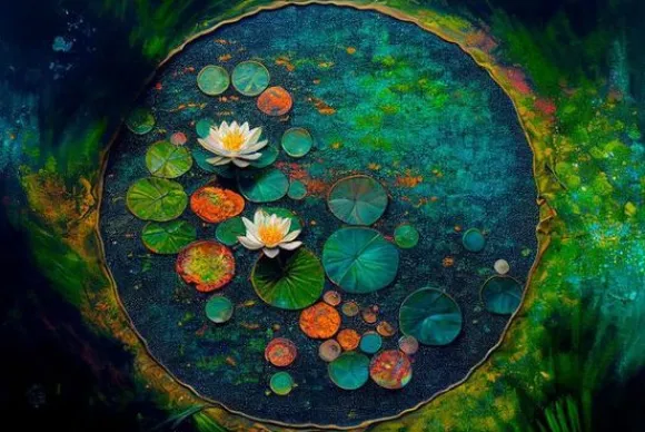 Glasschilderij De Vijver 080120-986 van het merk Ter Halle is 120 cm breed en 80 cm hoog. Op dit schilderij is een cirkelvormige vijfer afgebeeld. Waterlelies liggen op het water. Dit schilderij is gemaakt van glas. Een glasschilderij heeft levendige kleuren, een glanzende afwerking en een realistisch diepte-effect. Al deze eigenschappen zorgen voor de luxe uitstraling van dit schilderij. Dit schilderij wordt met een ophangsysteem geleverd.
