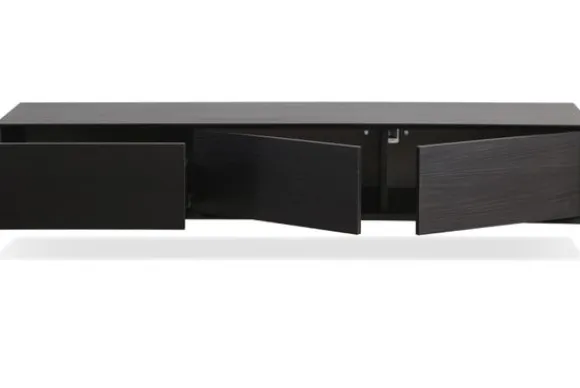 Hangend tv-meubel Compose van het merk Ideco is een stijlvolle en veelzijdige toevoeging aan ieder interieur. Het strakke, zwevende ontwerp met zwart houten afwerking en een subtiel zwart metalen frame straalt een moderne elegantie uit. Dankzij de tijdloze vormgeving past dit meubel moeiteloos in een industrieel interieur, waar de robuuste uitstraling prachtig samengaat met ruwe materialen zoals beton en staal.