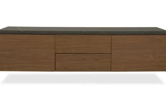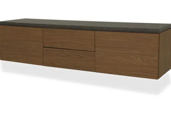 Monteer het tv-meubel hangend voor een strak effect of kies voor 12 cm hoge poten voor een luchtige look.