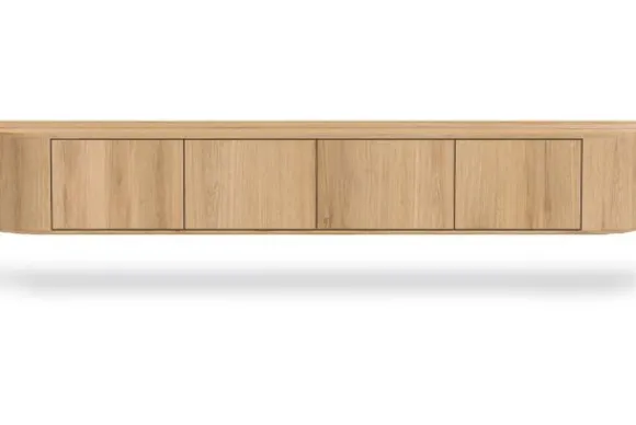 Hangend tv-meubel Novero van het merk Livingfurn is een zwevend wandmeubel met een lichte houtkleur en afgeronde vormen. Door het hangende ontwerp blijft de vloer vrij, wat dit tv meubel geschikt maakt voor de woonkamer en zorgt voor een open indeling.