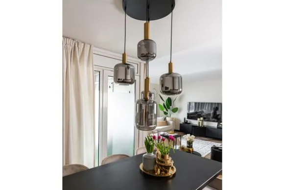 Je sluit hanglamp Joanet eenvoudig aan op een externe dimmer, zodat je de lichtsterkte kunt afstemmen op elk moment van de dag. De lamp combineert elegantie en functionaliteit en past perfect in moderne en luxe interieurs.
