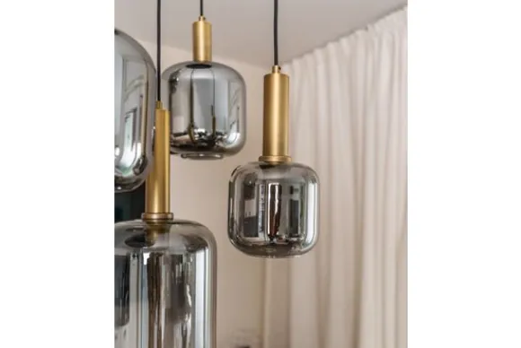 Hanglamp Joanet van het merk Lucide heeft de elegantie van een wenteltrap en de luxueuze uitstraling van een kristallen luchter. De vijf glazen lampenkappen hangen op verschillende hoogtes en in variërende formaten, waardoor een speels lichtspel ontstaat. De glazen kappen zijn gemaakt van echt, hoogwaardig glas en laten het licht mooi door de ruimte verspreiden. Gebruik bij voorkeur filamentlampen voor een warme en sfeervolle uitstraling.