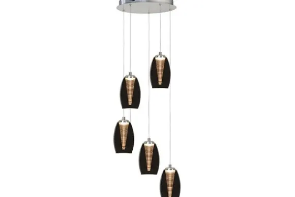 Hanglamp Nebula van het merk Highlights heeft 5 lampen met gerookte glazen lampenkappen. Deze 5 lampen zijn verstelbaar in lengte, de maximale lengte is 170 cm. De lampen kunnen ook op verschillende lengtes gehangen worden, waardoor je een speels effect creeërt. De serie Nebula bestaat uit een hanglamp, plafondlamp, wandlamp en tafellamp, zowel in amber glas als in smoke glas. Maak je interieur compleet met deze serie!