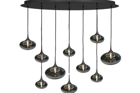 Hanglamp Paradiso van het merk Maretti Lighting is een indrukwekkende lamp. Deze bestaat uit een zwarte, ovale plafondbak met 10 smoke kleurige glazen bollen in verschillende maten, met daarop een zwarte houder. De snoeren zijn in hoogte verstelbaar tot maximaal 150 cm, dus je kan de lichtbronnen precies op de hoogtes hangen die jij wilt!