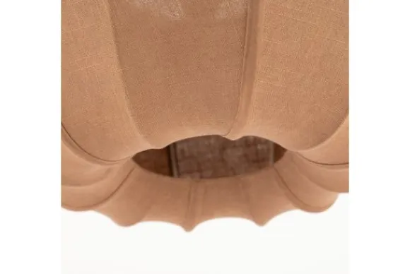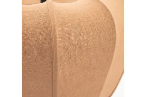 De Sora valt op door haar ronde, bijna pompoenvormige design. Het stoffen doek laat het licht subtiel door, waardoor een aangename gloed ontstaat.