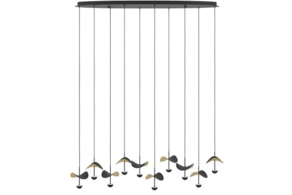 Hanglamp Dracera van het merk Eglo is een speelse lamp met gebogen gouden blaadjes en strakke lampjes eronder. Deze desinghanglamp geeft een gezellige sfeer in je woonruimtes. Dim de lamp voor de meer knusse momenten of zet het licht juist feller wanneer je bijvoorbeeld gezellig een spelletje aan het spelen bent. De hanglamp heeft op verschillende hoogtes tien goudkleurige gebogen blaadjes, tien zwartkleurige lampen en is in het zwart afgewerkt. De hanglamp is incusief de lichtbronnen.