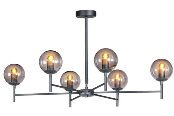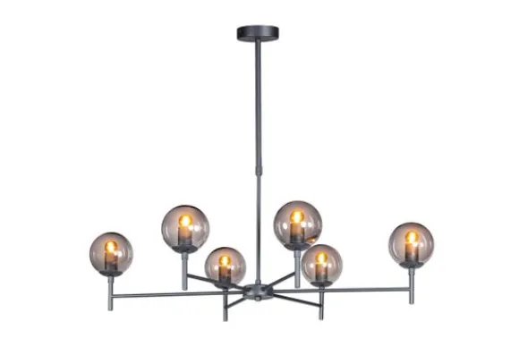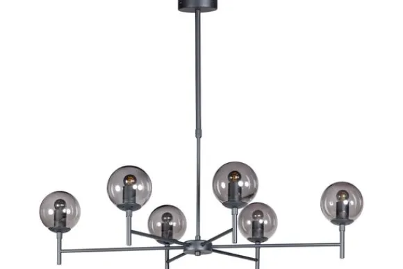 De lamp wordt exclusief lichtbron geleverd. Doordat de lichtbron niet meegeleverd is, kun je zelf bepalen hoeveel licht je wilt en in welke kleur. Deze lamp is uitgevoerd met 6 E27 fittingen.