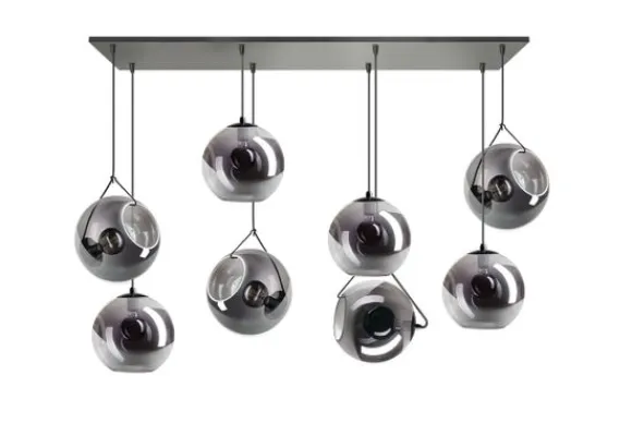 Hanglamp Orb van het merk ETH is niet alleen mooi wanneer hij brand. Overdag is het ook zeker een plaatje om naar te kijken. De lampenkap is voorzien van smoky glas. Door het gekleurde glas geeft de lichtbron sfeervol licht, waardoor het licht niet te fel is. De lamp wordt inclusief beugel geleverd. Doormiddel van deze beugel kan je de lamp richten naar verschillende plekken. De lamp is verstelbaar in hoogte, de maximale hoogte is 130 cm. De kap is 22 cm hoog. De bollen hebben een diameter van 25 cm. De Orb lampencollectie bestaat uit een hang-, tafel- en vloerlamp.