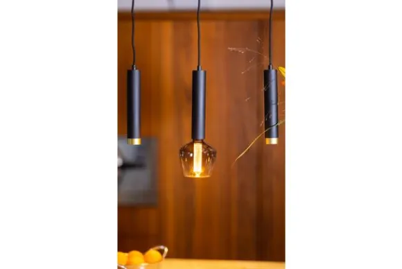 Hanglamp Miller van het merk ETH is uitgerust met 10 E27 fittingen met een maximale wattage van 60 Watt. Aan het uiteinde van elke spot kan zowel een zwarte als een goudkleurige ring worden geplaatst. Deze kun je na verloop van tijd weer omwisselen als je weer wat anders wilt! Ook heb je nog de mogelijkheid om de ringen weg te laten en te kiezen voor decoratieve ledlampen. De lampen zijn onafhankelijk in hoogte te verstellen bij de montage tot 200 cm.