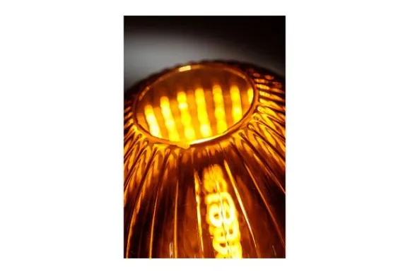 De lamp wordt exclusief lichtbron geleverd. Doordat de lichtbron niet meegeleverd is, kun je zelf bepalen hoeveel licht je wilt en in welke kleur. Op de afbeelding is gebruik gemaakt van een kooldraad led lamp. Deze lichtbron komt mooi tot zijn recht in deze lamp, omdat je door de lamp heen kunt kijken.
