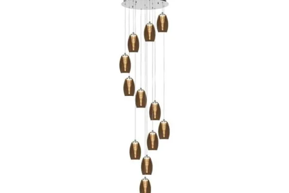 Hanglamp Nebula Amberglas van het merk Highlights heeft twaalf lampen met amberglazen lampenkappen. Deze twaalf lampen zijn verstelbaar in lengte. De maximale lengte is 340 cm. De lampen kunnen ook op verschillende hoogtes gehangen worden, dit creëert een speels effect. De Nebula serie bestaat uit een hanglamp, plafondlamp, wandlamp en tafellamp. Deze zijn verkrijgbaar zowel in amberglas als in rookglas. Maak je interieur compleet met deze serie!