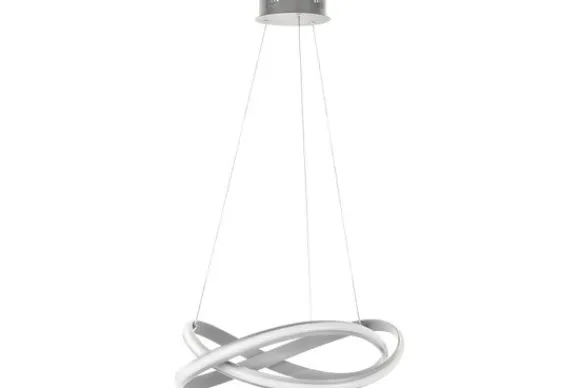 Hanglamp Waves van het merk Highlight heeft een speelse lichtverdeling door de kringel. In de zilveren kringel zit een LED-strip verwerkt met een gelijkmatige, warme lichtverdeling. De hanglamp is verstelbaar in hoogte, de maximale hoogte is 140 cm.