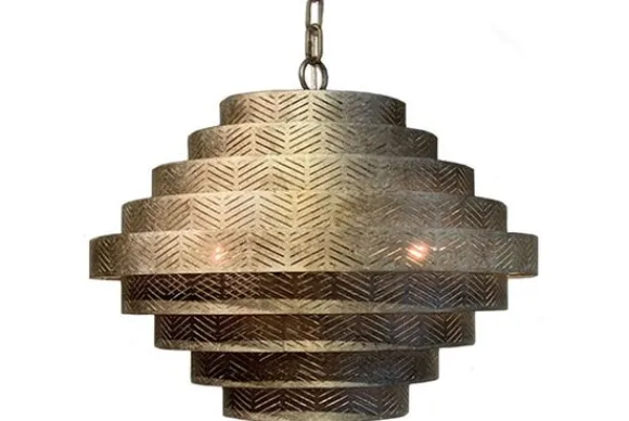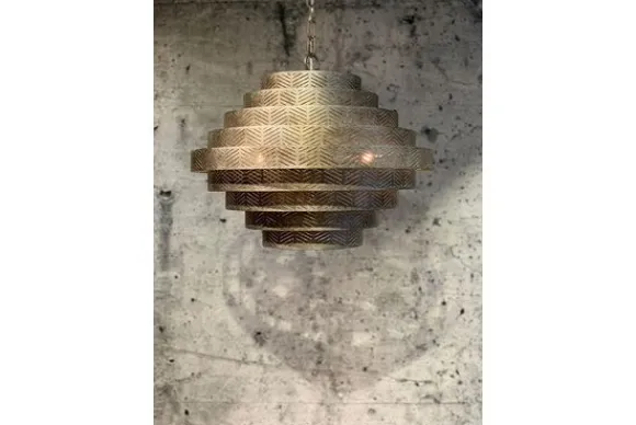 Hanglamp Vegas LB031-4+1zlv van het merk Leclercq en Bouwman heeft een ambachtelijk zilvere kleur. De negen ovalen ringen zijn geperforeerd, hierdoor geeft de lamp mooi verspreid licht. De lamp is voorzien van vier E14 fittingen en één GU10 led spot. Deze spot zet je eenvoudig aan of uit met een klein schakelaartje aan de onderkant van de lamp en is apart te bedienen van de rest van de lamp. De lamp wordt standaard geleverd met een ketting van 150 cm die eenvoudig aan te passen is voor je gewenste hoogte.