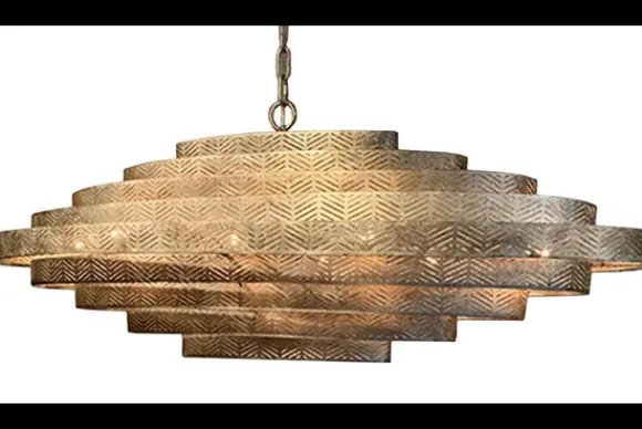 Hanglamp Vegas LB031-8+1zlv van het merk Leclercq en Bouwman heeft een ambachtelijk zilvere kleur. De negen ovalen ringen zijn geperforeerd, hierdoor geeft de lamp mooi verspreid licht. De lamp is voorzien van acht E14 fittingen en één GU10 led spot. Deze spot zet je eenvoudig aan of uit met een klein schakelaartje aan de onderkant van de lamp en is apart te bedienen van de rest van de lamp. De lamp wordt standaard geleverd met een ketting van 150 cm die eenvoudig aan te passen is voor je gewenste hoogte.
