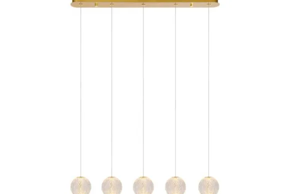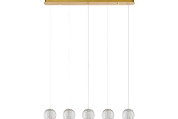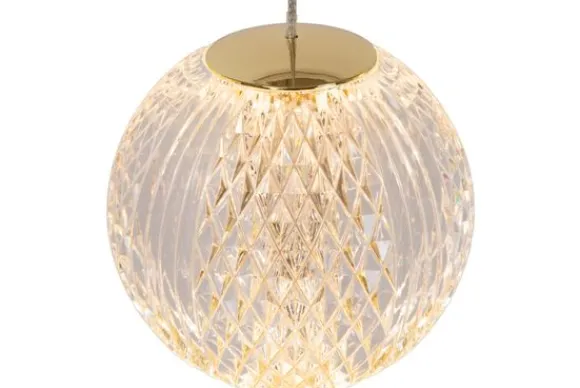 Hanglamp Cintra van het merk Lucide heeft bolvormige lampenkapjes uit transparante acryl die doen denken aan echt kristal door hun typerende groeven. Een heuse eyecatcher boven de eettafel of in je salon. Deze hanglamp is in hoogte verstelbaar en met een formaat van 11 x 11 x 9,8 centimeter passen de transparante lampenkapjes perfect in je ruimte. De messing details maken het plaatje compleet. Geniet van de geïntegreerde, dimbare ledlamp als extra troef van deze sprankelende lichtbron.