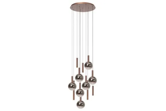 Hanglamp Jasmine van het merk Lucide is een moderne lamp met een luxe uitstraling. De combinatie van koperkleurig, hoogwaardig aluminium en rookglazen bollen zorgt voor een stijlvol contrast dat warmte toevoegt aan ieder interieur. Dankzij de verstelbare hoogte kan de lamp eenvoudig worden aangepast aan verschillende ruimtes, van eetkamer tot vide.